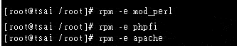 当然啰,如果你之前安装了旧版的 Apache 、 PHP、或 MySQL,那你也可以移除。其实这是个人习惯,有的人喜欢保存两种版本在他们的系统中,若你也想安装两种版本在你的系统中,那你也不需要移除 rpm 的安装套件喔!不过,为了怕系统冲突,你必须要以 setup 的程序来取消 httpd, php 及 mysql 的服务喔!