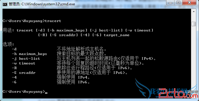 其它参数同样在DOS命令下输入tracert或tracert /? 就会出现相应帮助(如下)。