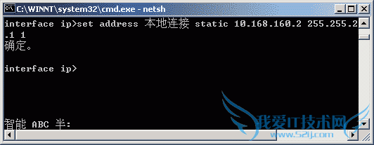 了解了上述字符串命令的各个参数意义后,笔者现在就以一实例来介绍一下如何具体设置工作站的IP地址。例如,现在要将Windows 2000系统下的一台工作站的IP地址修改为“10.168.160.2”,将它的网络掩码地址修改为“255.255.255.128”,将它的网关地址修改为“10.168.160.1”,此时你不妨在“Interface ip>”提示符下,输入“set address 本地连接 static 10.168.160.2 255.255.255.128 10.168.160.1 1”字符串命令,单击回车键后,系统要不了多长时间,就能将命令执行的结果返回,倘若结果显示为“确定”的话,如图2所示,就说明工作站的IP地址已经修改成功了。