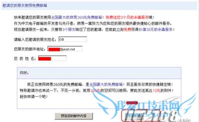 在发送成功的页面上点击“邀请您的朋友使用网易260免费邮箱,您将免费获得3个月的杀毒服务!现在就邀请吧!”这个链接。