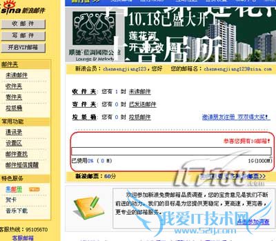 首先登录sina邮箱,在弹出的页面中点击“登录1GB邮箱”即可,升级后的效果如图如下: