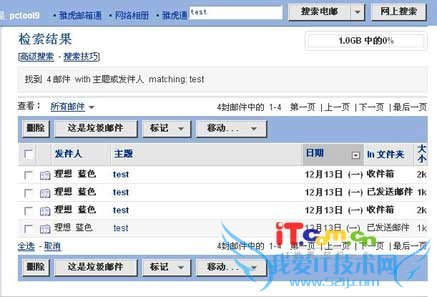 邮箱用的时间久了,里面的邮件会越来越多,如果日后想查看以前收到的邮件,怎么办呢?一页一页的查找就显的过于麻烦了。雅虎邮箱可以为我们很方便的解决这个问题,只要在邮箱里面搜索框中输入要搜索的关键字,然后点击“搜索电邮”就可以对所有邮件进行搜索(如图4所示)。这样就可以大大方便邮件的管理了。同时我们也可以对输入的关键字进行网上搜索,只要点击“网上搜索”按钮,就可以通过互联网进行搜索输入的关键字了。