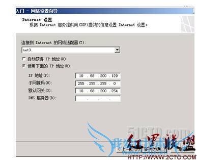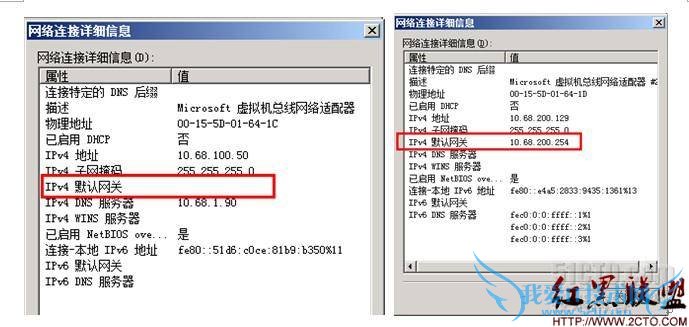 但注意内网没有设置默认网关,只在外网设置默认网关,如下图所示:
