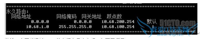 Route add 10.68.1.0 mask 255.255.255.0 10.68.100.254 –p