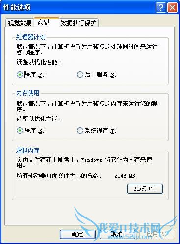windows XP运用的虚拟缓存技术可以将磁盘作为虚拟内存来使用,但同时会占用大量的硬盘空间,这对于拥有小硬盘和将系统区分得很小的用户来说是很痛苦的,不但运行速度慢,而且windows会不时的让你整理磁盘,在windows9x和me下您是无法把分页文件pagefile.sys移动的,在XP下您可以把这个文件移动到任何一个分区。操作过程如下:我的电脑-〉(点鼠标右键)属性-〉高级-〉设置(性能)-〉高级-〉更改(虚拟内存)。在对话框中您就可以制定把分页文件放在哪个分区以及文件的大小,给您充分的自由。