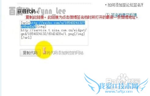 使“图片地址”文本框失去焦点,单击窗口空白处,图片便显示在窗口中了,如图所示。然后回到新浪微博签名档界面,复制url地址,此URL地址为点击签名档后转到的地址,即个人微博主页。