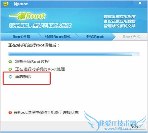Root完毕之后,腾讯手机管家(PC版) for Android会重新启动您的手机;