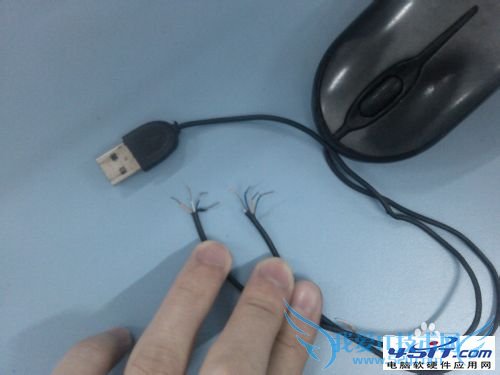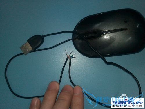 1、在图片中可以看到鼠标线是破损得很厉害,鼠标也不能工作了。