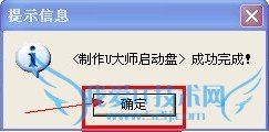 7.制作完成后,弹出提示,单击”确定“即可,此时,若再次插上U盘即可作为启动盘来使用。