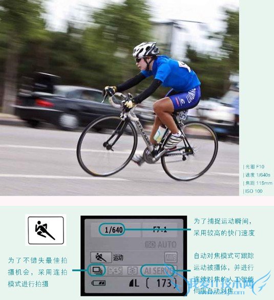 运动模式适合拍摄奔跑的小孩、移动的车辆或者主体快速移动的竞技运动等题材。使用此模式时,数码单反相机将首先使用中央对焦点跟踪拍摄主体,随后使用其他对焦点进行跟踪对焦。同时,为了能够凝固被摄体的运动瞬间,相机自动采用较高的ISO感光度来保证较高的快门速度,用所能达到的最短曝光时间捕捉拍摄主体的瞬间动作。此外,运动模式还采用了连拍功能,提高了捕捉瞬间机会的能力。当被摄体进入画面后,半按快门按钮,开始自动对焦。