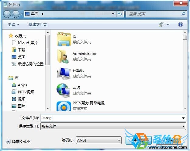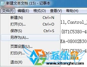 3、然后点击文本文档的菜单,文件——另存为,并将文件格式改为“所有文件”,保存为 IE.reg;