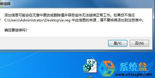 4、双击生成的IE.reg文件,系统会自动将注册表信息导入注册表中。