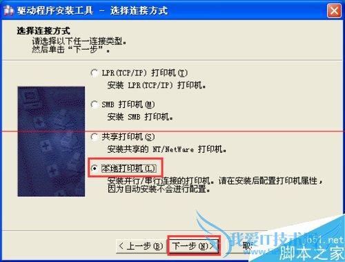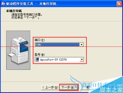 3、任意选择一个端口,然后选择对应的新打印机的型号后,点击 下一步: