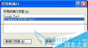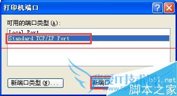 3、因为是网络打印机,因此选择 Standard TCP/IP Port,然后点击 新端口: