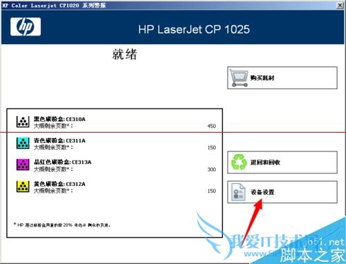 3、再选择"HP→HP LaserJet Professional CP1020 Series→设备设置”