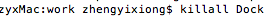 2、再输入killall Dock回车