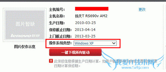 3. 选择操作系统类型,如您需要XP下对应机型驱动,则通过下拉菜单进行选择;