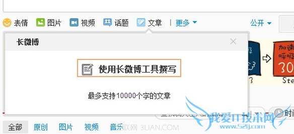 欢迎您访问我爱IT技术网,今天小编为你分享的电脑教程是日常使用电脑方面的电脑常识:新浪微博网页版如何发万字文章?,学会并运用这些电脑常识,让你快速玩转电脑及互联网方面的知识,下面是详细的分享!