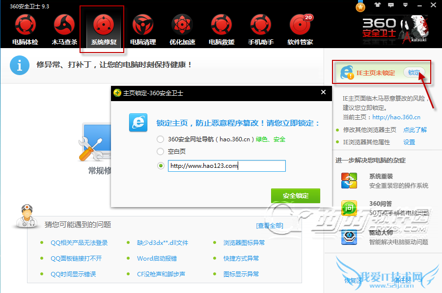 5、如果您的电脑上装了360安全卫士,那么就需要在360卫士的系统修复选项卡里面更改了。