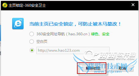如上图,左侧IE主页-锁定或者修改: