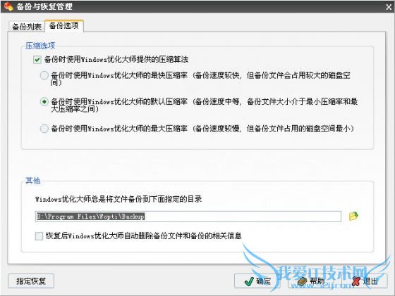 您可以通过备份选项功能来设置备份文件的压缩方式、存放路径等。
