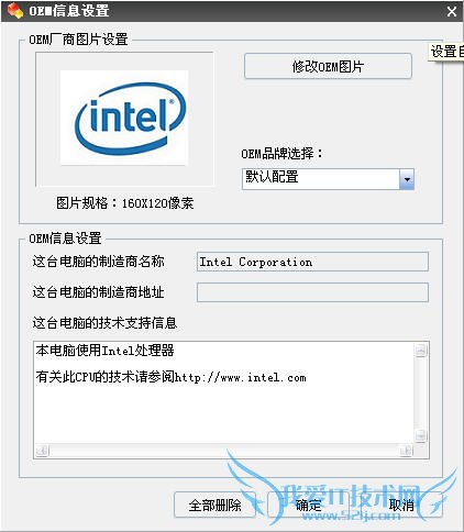 OEM信息设置。设置该项可设置系统属性中的各项OEM信息。