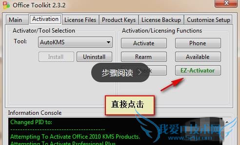 在激活office时,如果出现Cannot use EZ-Activator because your licensing details are corrupt错误。打开Office Toolkit工具