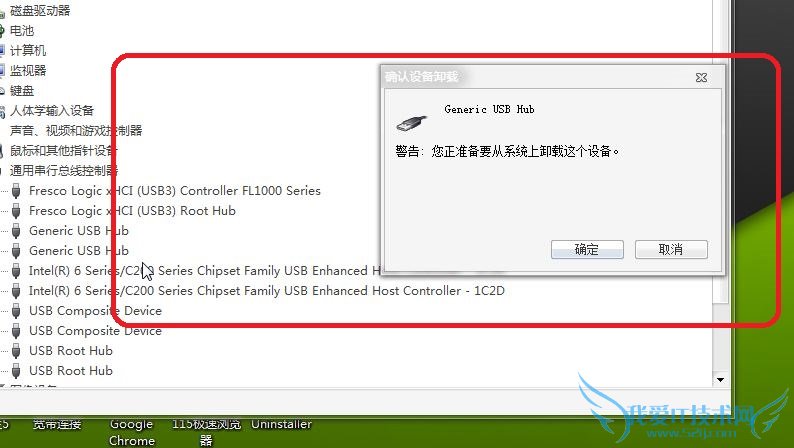 可是我怎么能记住那名字呢?还是用我的土办法,挨个实验,逐个卸载,哪一个卸载之后,鼠标底板的红灯灭了,那个就是对应的USB接口了。