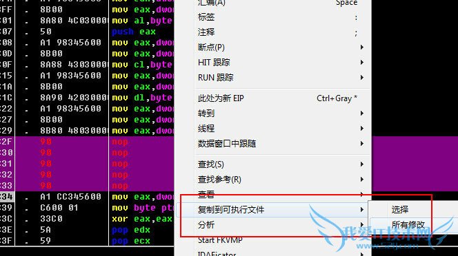右键->复制到可执行文件->所有修改,再点击全部复制即可。