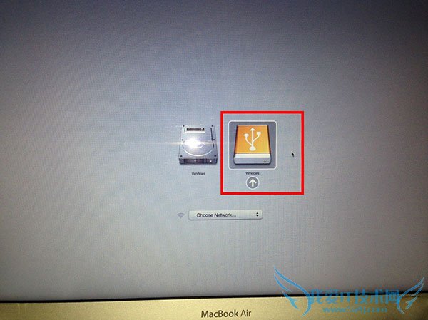 把制作好的U盘插入电脑,同样,开机安装option键,出来选项之后,选择windows选项,此时电脑会进入读取U盘里面的winpe系统,如下图: