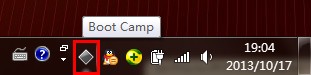 安装好了之后,你的右下角MAC系统里面熟悉的BOOT CAMP,出现了。如下图: