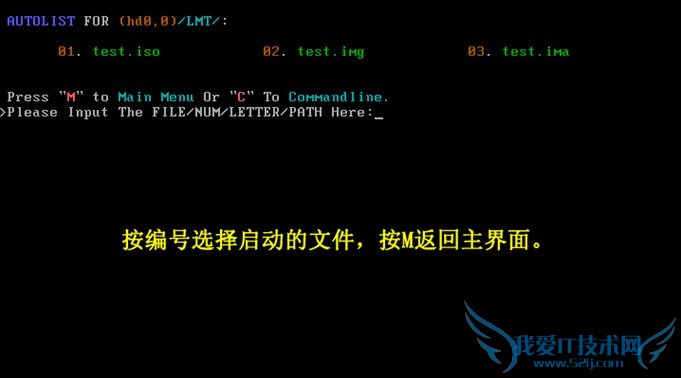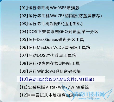 7、启动自定义ISO、IMG或IMA—制作完U盘启动,在U盘新建一个文件夹,将新建文件夹命名为LMT,将需要启动的ISO或者IMG、IMA放入LMT文件夹内。U盘启动后选择第10项菜单会自动列出LMT目录内的所有ISO、IMG或IMA文件(注:不支持系统安装ISO文件),按照编号选择按回车即可启动。