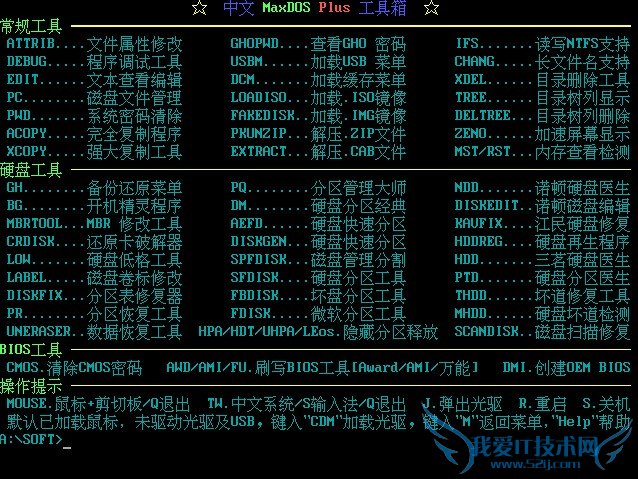 DOS时代菜鸟工具箱—dos工具合集的又一经典力作,支持鼠标操作。