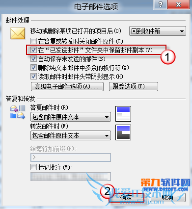找到并勾选“在已发送邮件文件夹中保留邮件副本”选项,按“确定”保存更改。