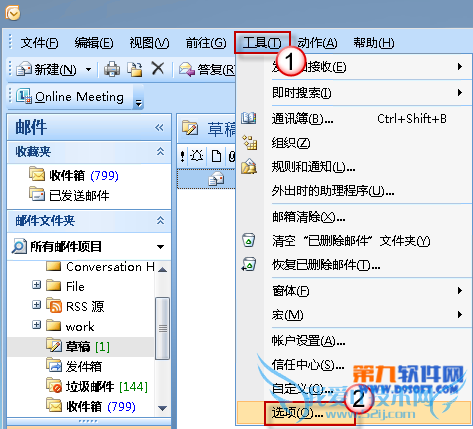 请打开邮箱,在菜单栏上单击“工具”-“选项”。