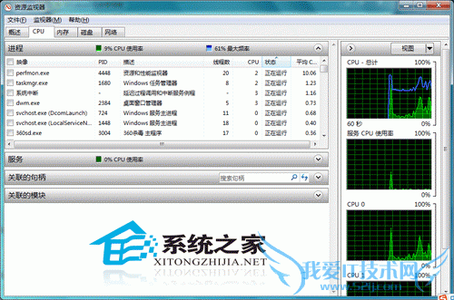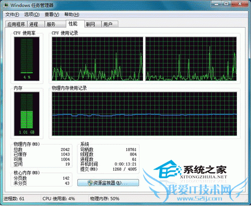 你可以打开任务管理器,点击性能,就可以查看CPU的工作状态。