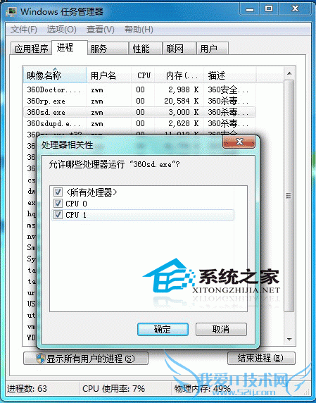 在Windows7中,你可以配置多个核心的处理器在应用程序运行的时候只使用一个,或几个核心。