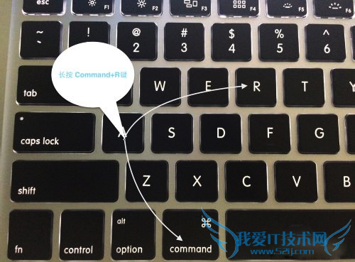 1、上面的方法是直接在 Mac 系统中进行修复,有时候会碰到一些问题不能直接在系统中修复,需要进入 Recovery 模式去恢复。这时请重新启动 Mac 系统,并按下键盘上的 Command+R 键,如图所示