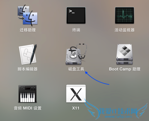 1、在 Mac 系统的 Launchpad 的其它中点击打开“磁盘工具”应用,如图所示