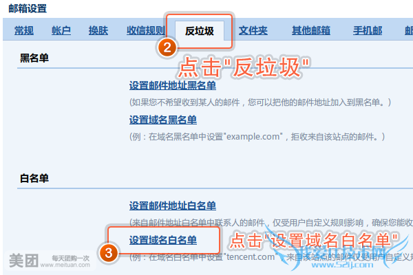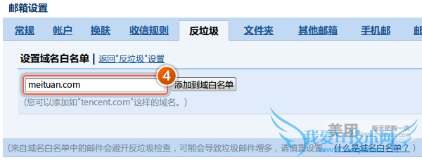 第二步:点击“反垃圾”标签下的“设置域名白名单 ”。