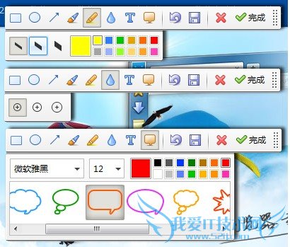 单纯的截取图片可能并不能达到“真相”的标准,我们往往需要对图片进行一些标注、处理等。当用户在区域截图中选取了截图区域后,在截图区域的下方会出现一个工具条,其中提供了丰富的图片编辑工具供用户选择。