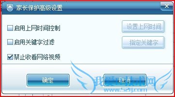 D、点击『高级』按钮,弹出高级功能设置界面,如下图,勾选『禁止收看网络视频』功能。
