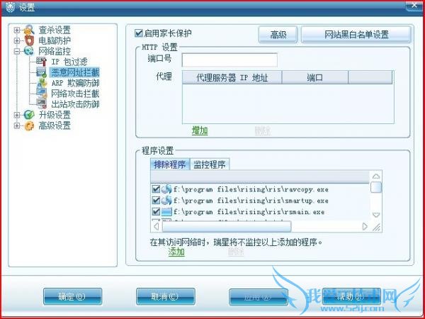 B、点击『瑞星全功能安全软件』或『瑞星个人防火墙』主界面『设置』菜单-切换到『网络监控』选项卡,如下图,勾选“开机启用”『恶意网址拦截』功能。
