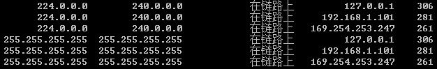 此外,如果发现虚拟机中的链接变为“未识别的网络连接”,在网络图标上带有黄色的叹号,可以按照前文在命令提示符中查看路由表是否正常,若不包含192.168.137.1内容(如下图)则说明网络共享不正常,可以先禁用网络共享再按照前文重新开启即可。