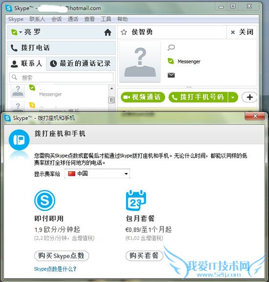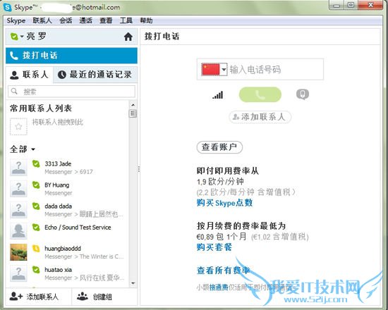 这个就是使用MSN登录之后的情况,跟MSN大同小异。如果想给好友通话,Skype会出现充值界面。