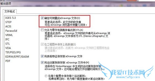 选择eDrawings如果这样直接输出的文件是没有测量的功能,需要在选项(option)进行设定
