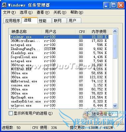 使用组合键:ctrl+alt+delete打开“任务管理器”,选择“进程”选项卡,这时会发现进程中缺少“explorer.exe”,这就是产生问题的主要原因。