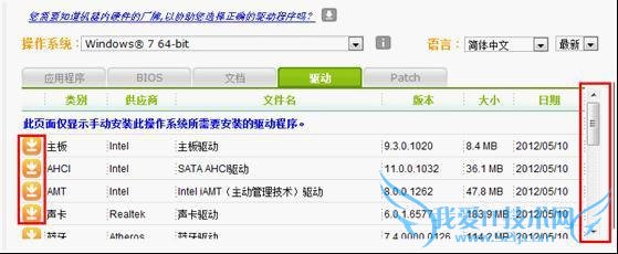 点击左边的向下小箭头下载驱动程序,右边有下拉菜单可以查看更多的驱动程序。