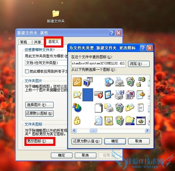2、更改文件夹的图标,会有一些空白图标,任选其一即可(这时可能需要刷新一下桌面背景,以免出现黑块);