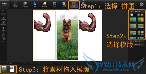 有了创意,拼图的过程其实非常简单,在好照片的“拼图”模块下选择“模版拼图”,将你需要的素材拖到模版当中即可。